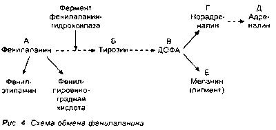 Генетический дефект при этой болезни приводит к врожденному отсутствию фермента фенилаланингидроксилазы (см. рис. 4).