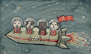 Хотя люди давно мечтали о космических путешествиях, мы не были первыми существами, которые очутились в космосе, — нас опередили обезьяны и собаки. Русская собака по имени Лайка и шимпанзе по имени Хэм были среди тех животных, которых посылали на земную орбиту на борту ракет в 1950-е — 60-е годы.